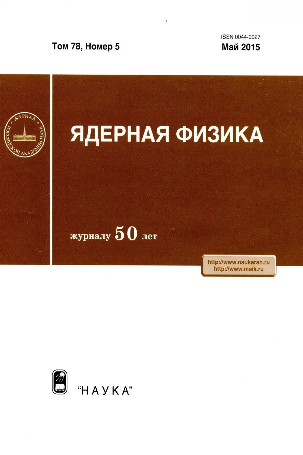 Ведущий журнал в СССР (России) по физике элементарных частиц и ядерной физике.
